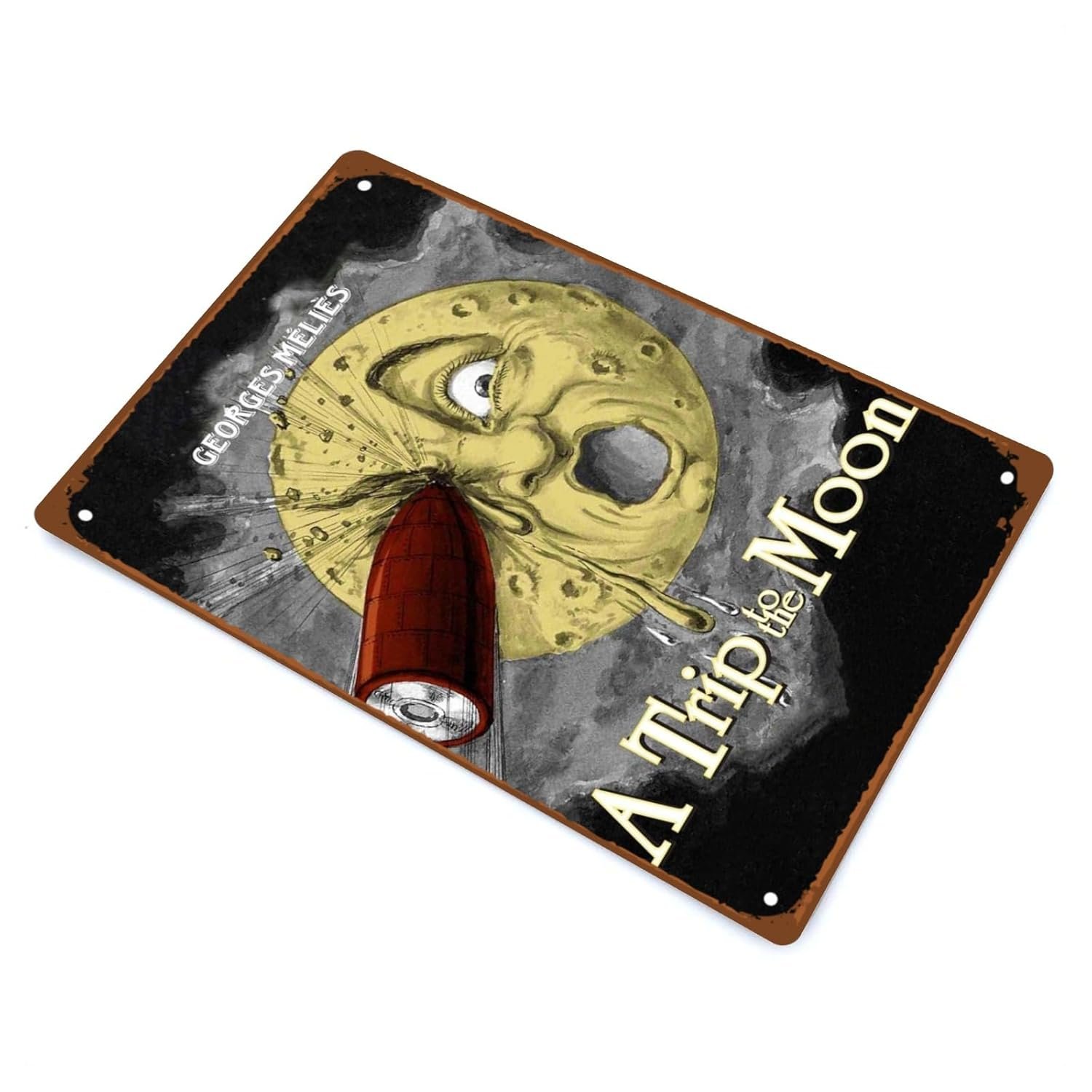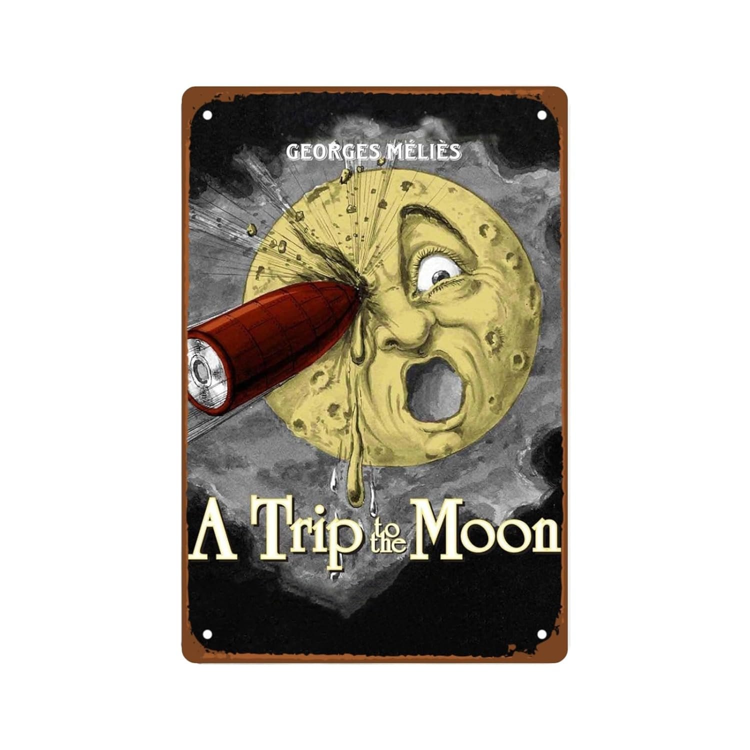 A Trip To The Moon Movie Man Cave Decor Vintage Aesthetic Movies Poster Metal Wall Tin Sign Retro Gift Vintage Decorations 8″x12″