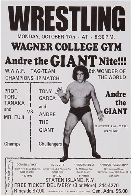 Andre The Giant - 1970s - Vintage Wrestling Poster-8 x 12 Inches (US/CAN only)Andre The Giant – 1970s – Vintage Wrestling Poster
