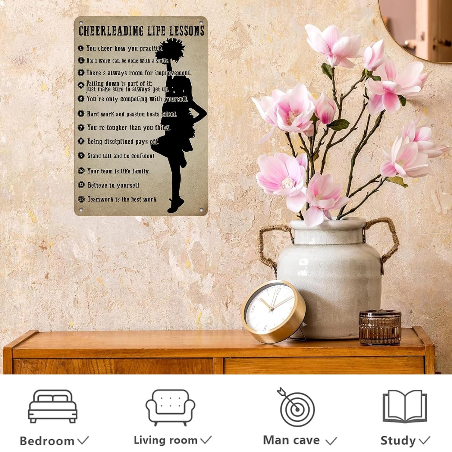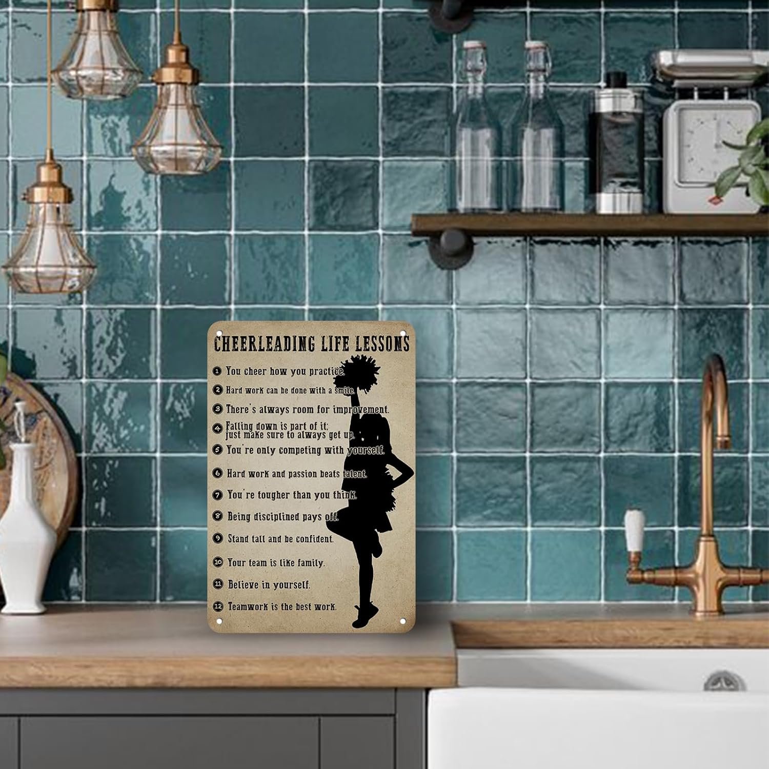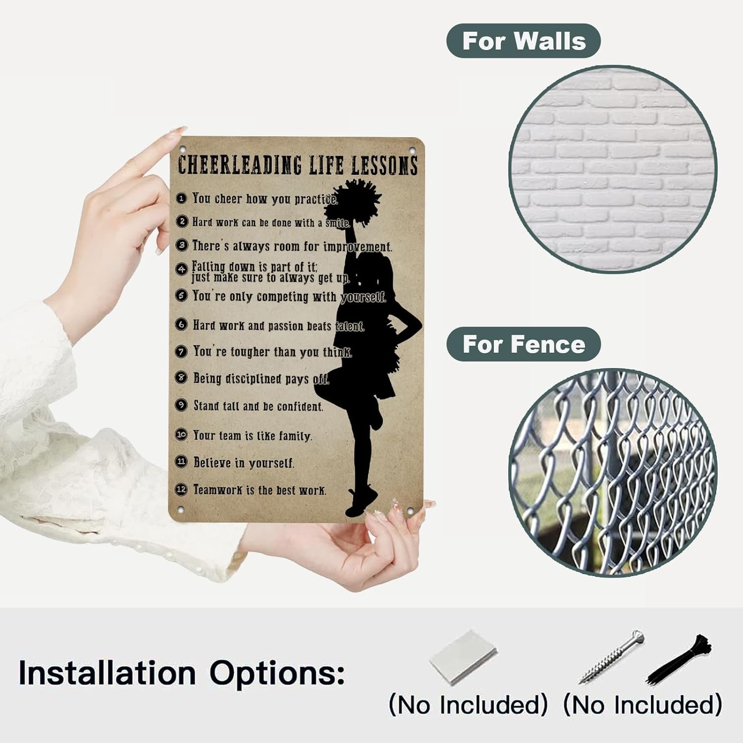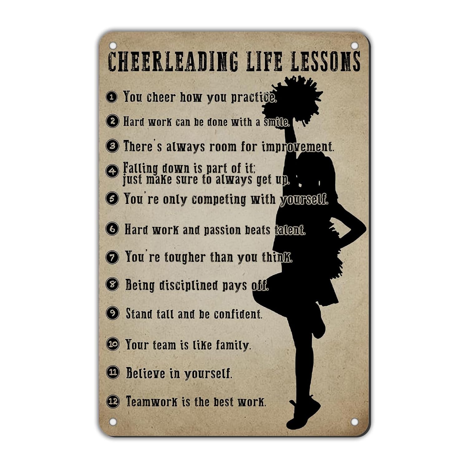 Cheerleader Gifts Inspirational Metal Sign Wall Decor Cheerleading Posters for Women Athletes Cheer Coach Living Room Girls Room Playroom Bedroom Gym Decor 12 * 8in