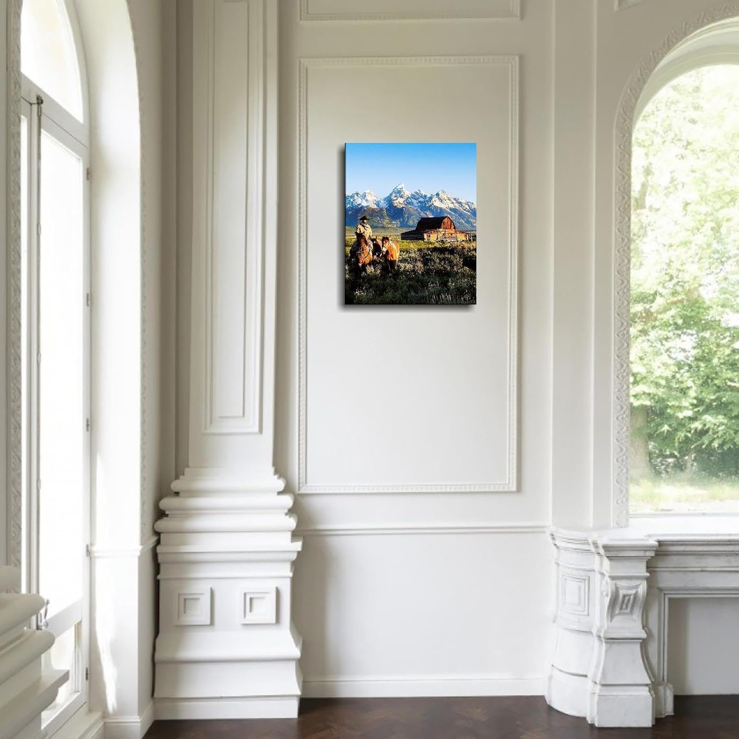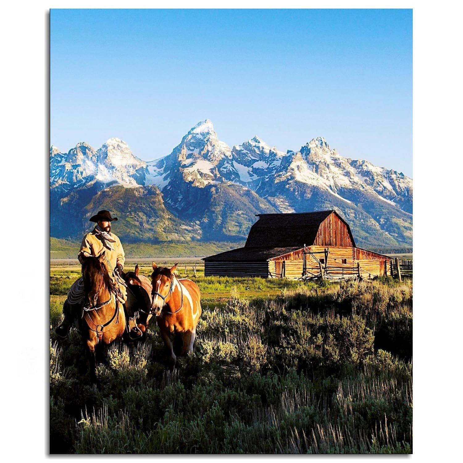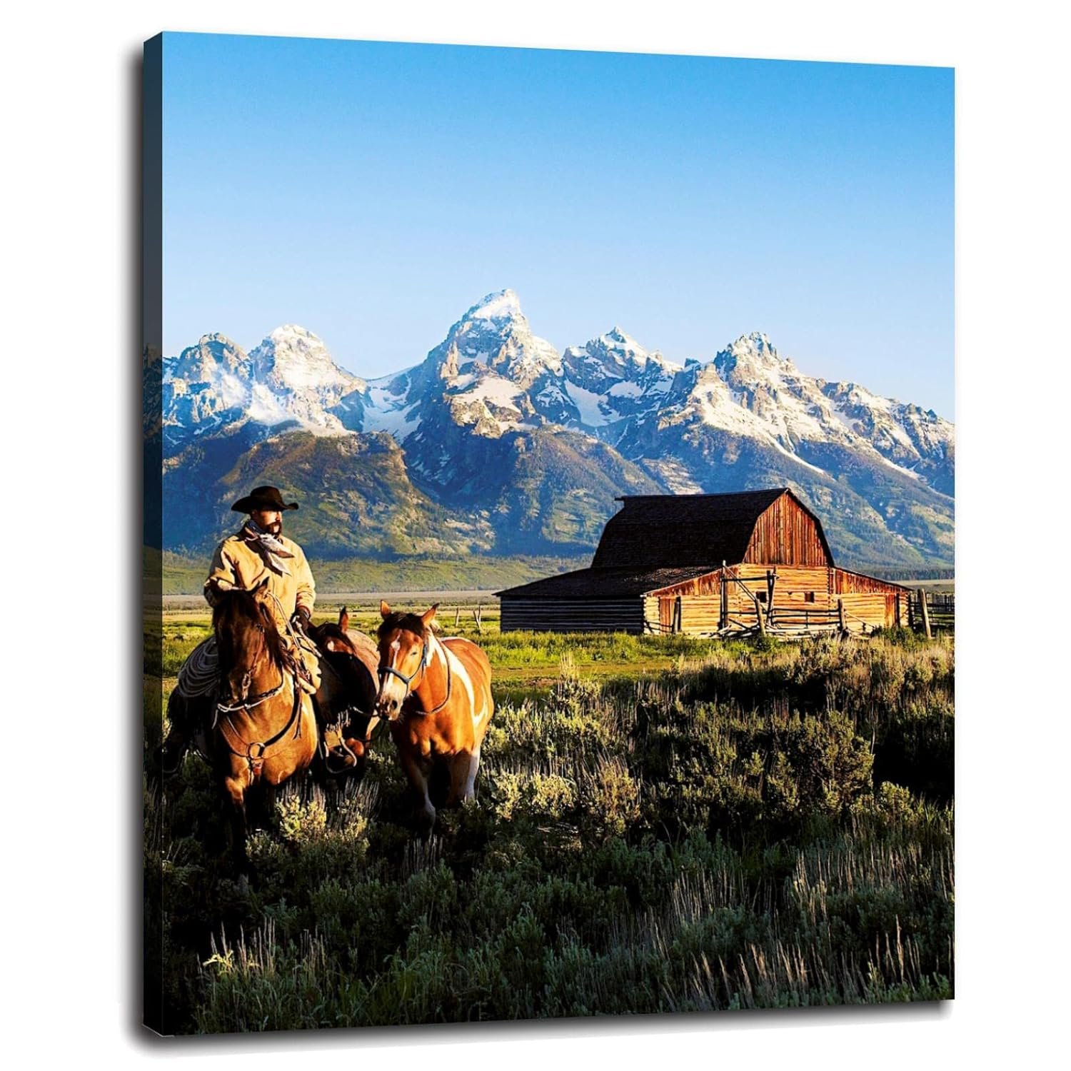 CLEARCONNECT Beautiful Natural Landscape Canvas Prints Mountain Chalets Traveling Cowboys And Horses Poster Wall Art For Home Office Corridor Decorations