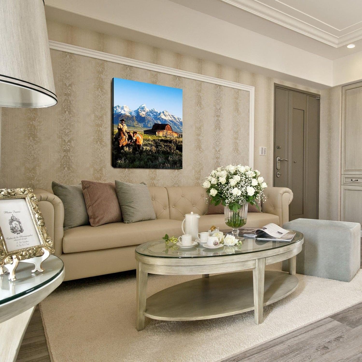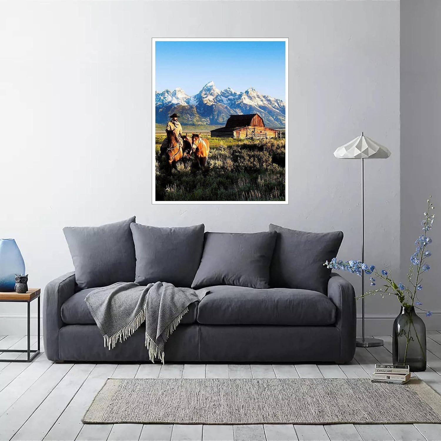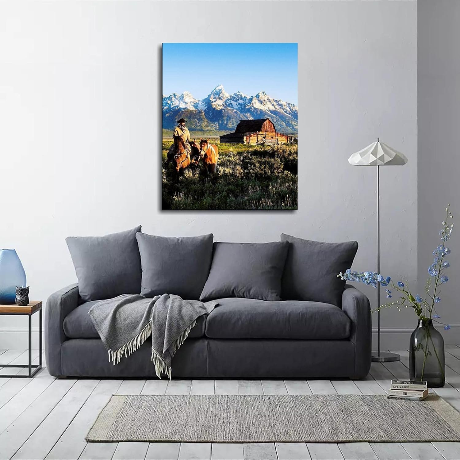 CLEARCONNECT Beautiful Natural Landscape Canvas Prints Mountain Chalets Traveling Cowboys And Horses Poster Wall Art For Home Office Corridor Decorations