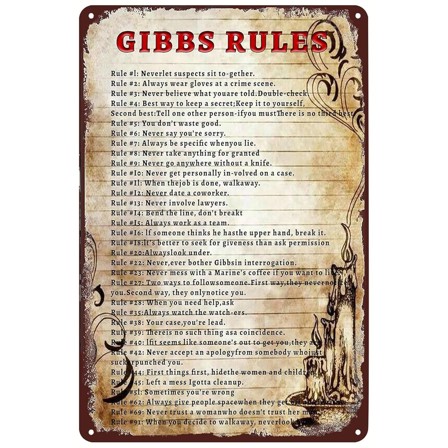 GIBBS RULES Metal Tin Signs Retro Poster Cafe Bar Living Room Bathroom Kitchen Home Art Wall Decoration Plaque Gift 8 X 12