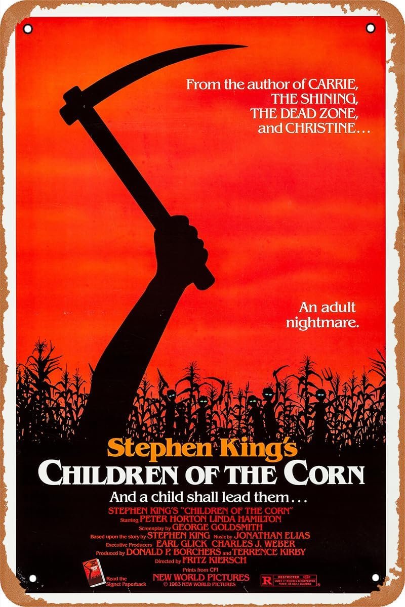 GYMBED Vintage Movie Tin Sign,Children of the Corn Poster Vintage Metal Sign Retro Wall Decor 12×8 Inches