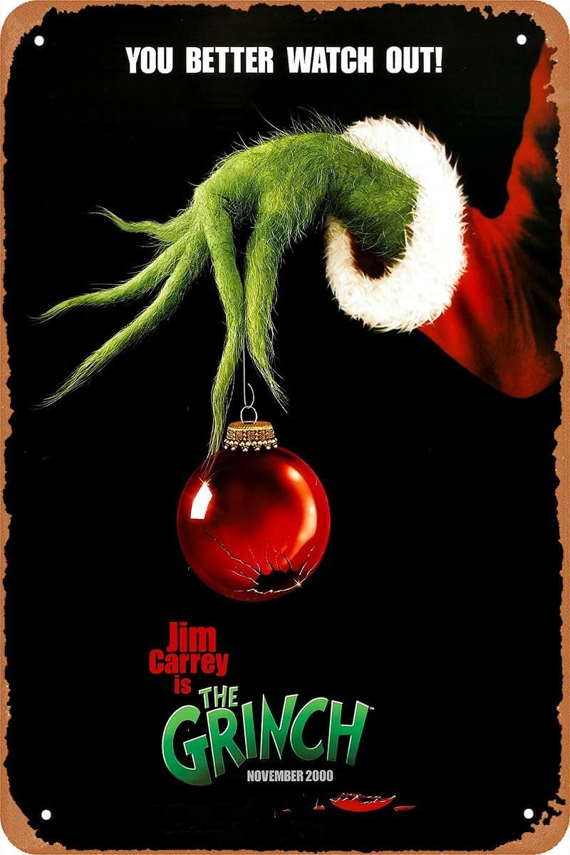 How the Grinch Stole Christmas Movie Poster Vintage Tin Sign for Cafe Bar Christmas Home Wall Art Decor Gift Retro Metal Sign 12 X 8 inch