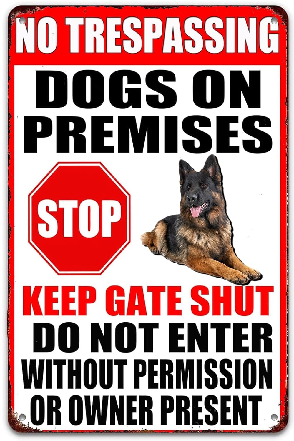 No Trespassing Metal Signs Dogs On Premises Stop Keep Gate Shut Vintage Metal Sign Retro Art Tin Painting for Home Bar Pub Cafe Farm Room Plaque Posters 12 X 8 Inch