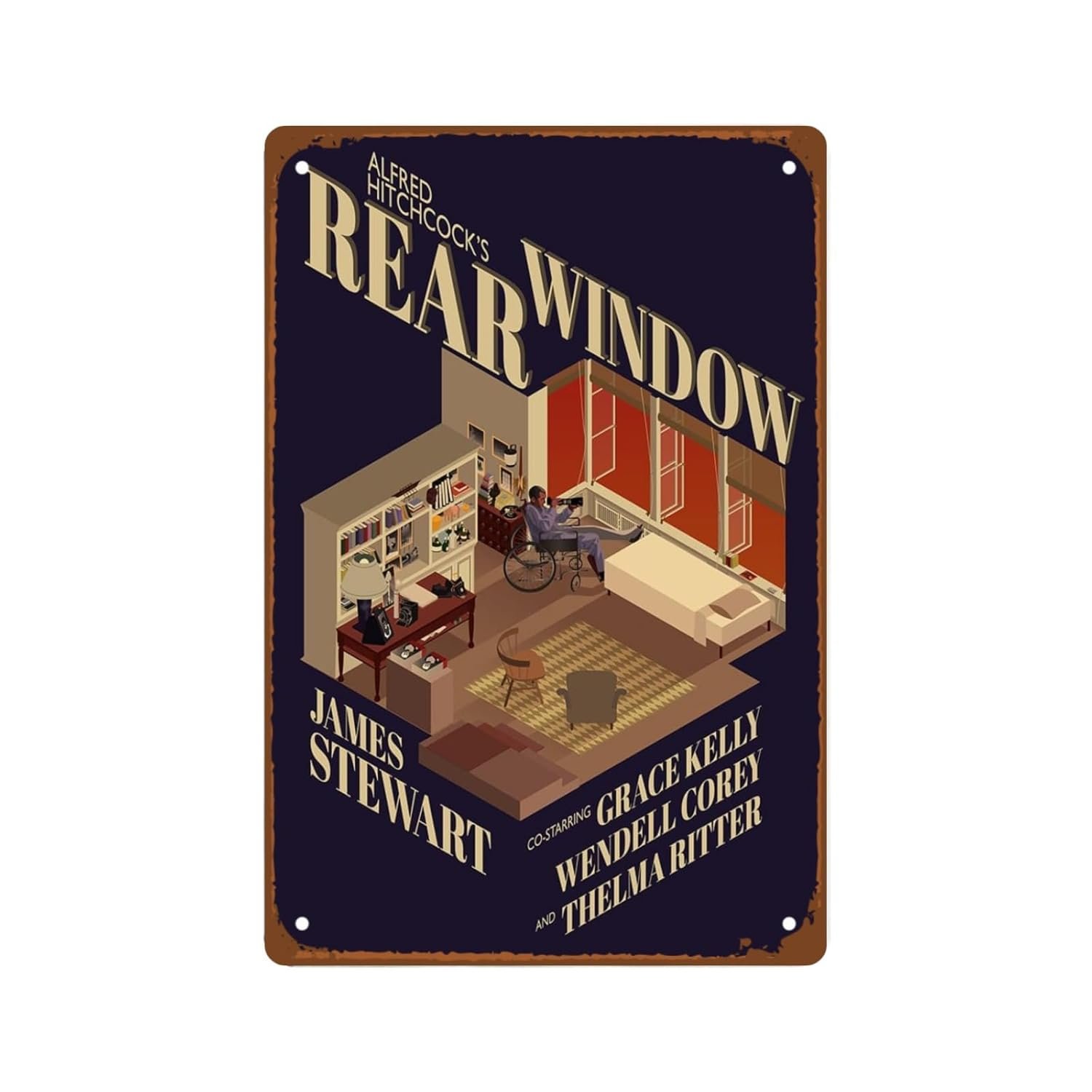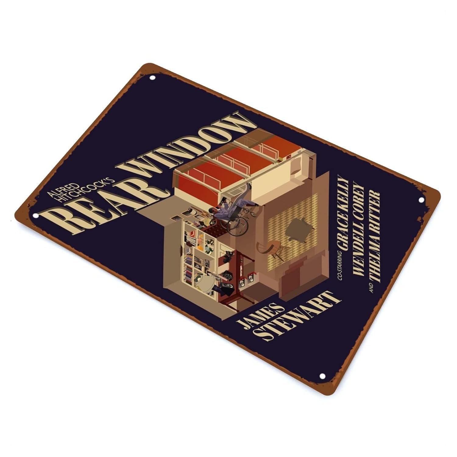 Rear Window Movies Country Rustic Metal Wall Tin Sign Suspense Thriller Movie Man Cave Decor Retro Gift Vintage Decorations Classic Retro Films 8″x12″
