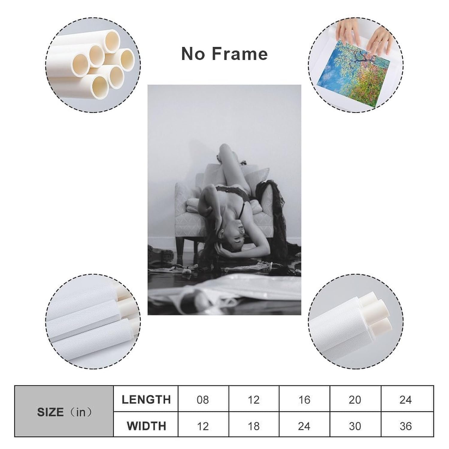 - Unframe-style; If you choose no frame, please note that our photos will only be rolled up. It will not appear on the frame. The image is the effect of installing the frame.