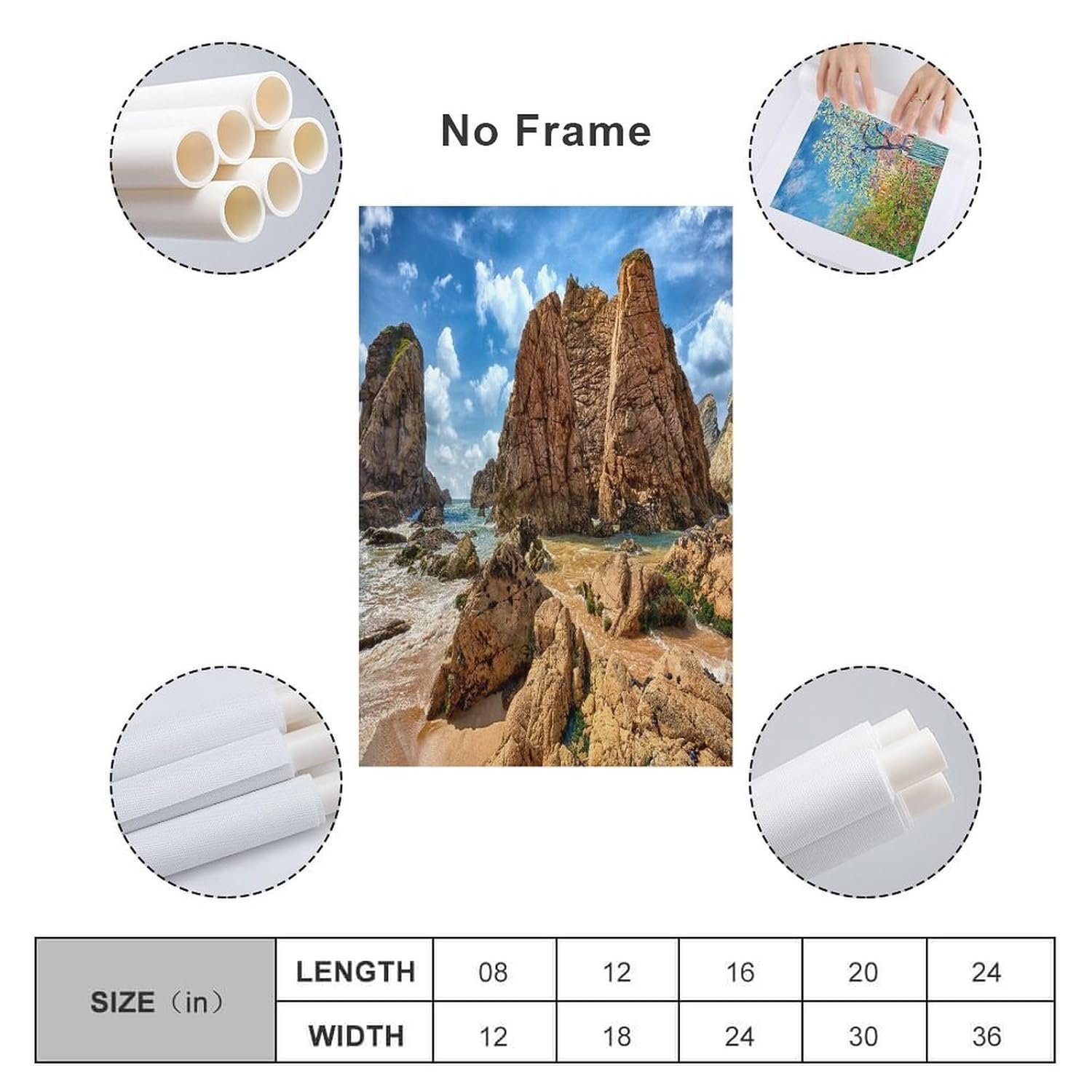 - Unframe-style; If you choose no frame, please note that our photos will only be rolled up. It will not appear on the frame. The image is the effect of installing the frame.