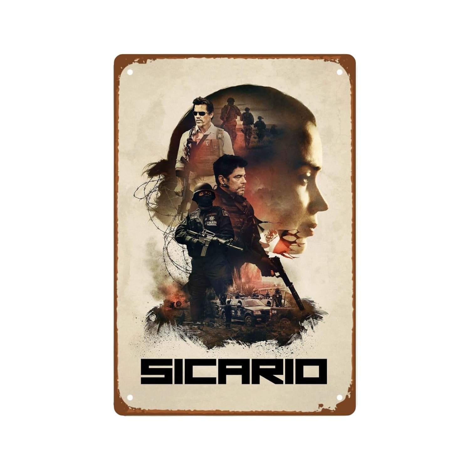 The Sicario Movie Man Cave Decor Drama Action Movie Rustic Metal Wall Tin Sign Retro Gift Vintage Decorations Drama Action Films 8″x12″