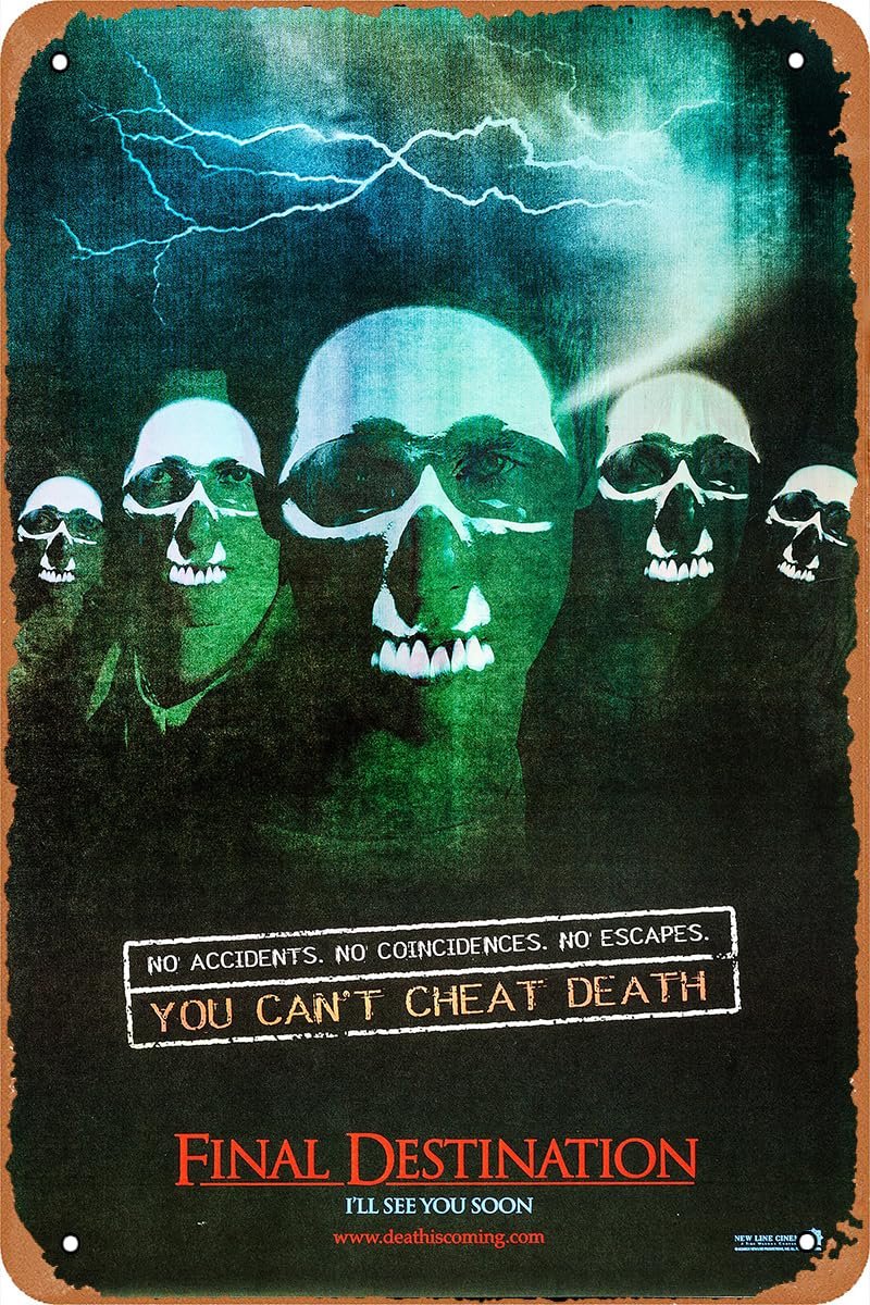 Vintage Movie Tin Sign,Final Destination 2000 Poster Vintage Metal Sign Retro Wall Decor 12×8 Inches