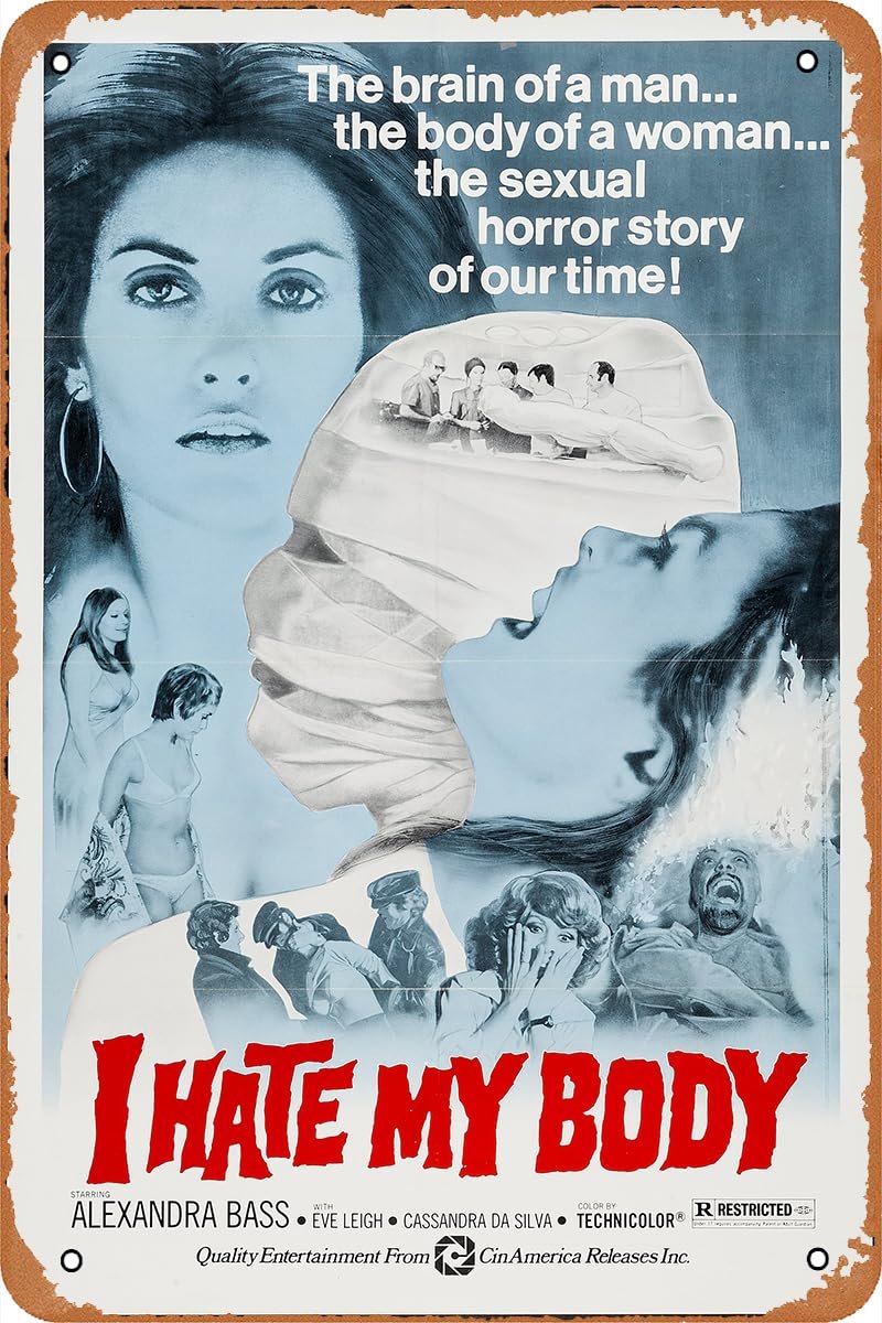 Vintage Movie Tin Sign,I Hate My Body Poster Vintage Metal Sign Retro Wall Decor 12×8 Inches