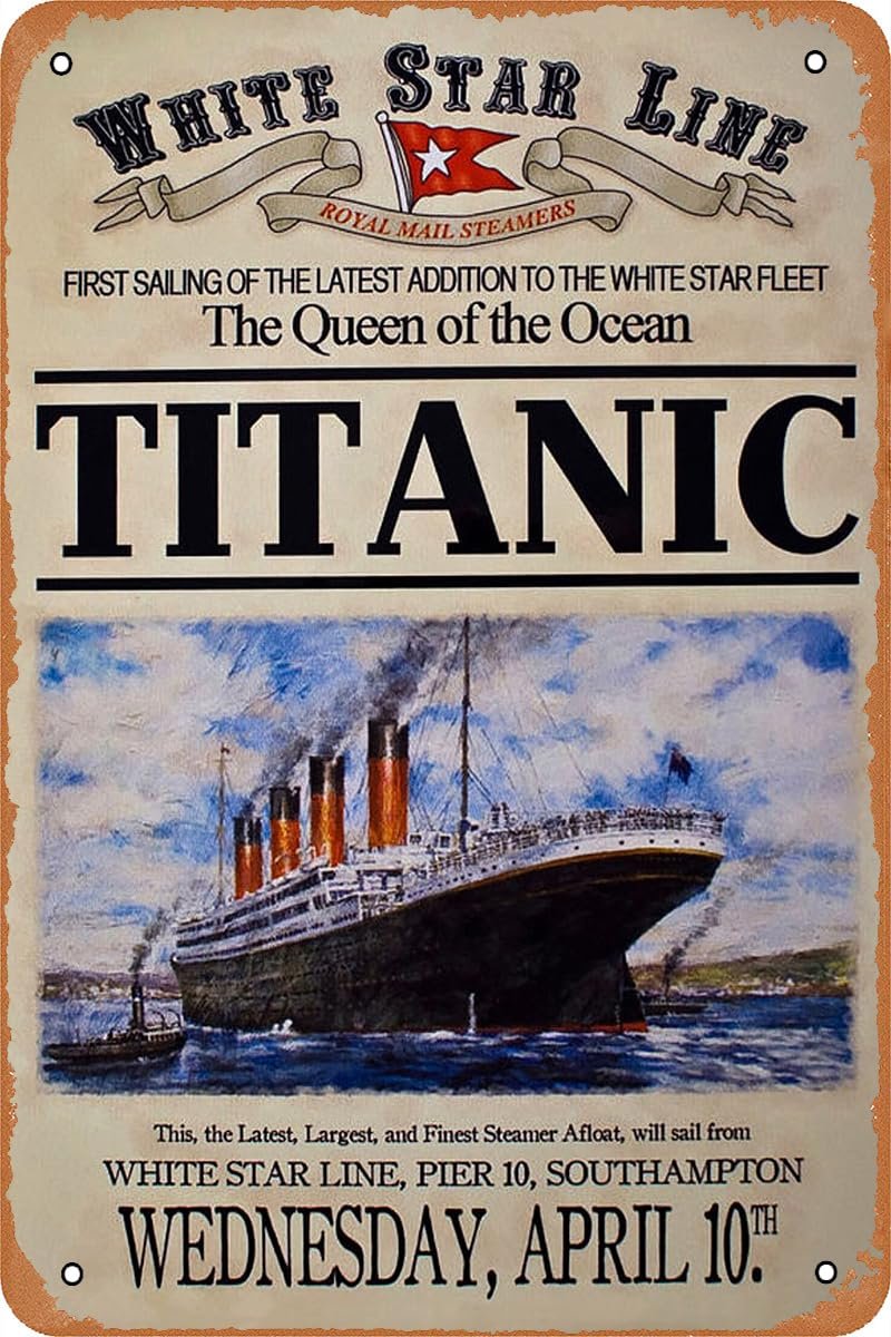 Vintage Tin Sign Titanic Movie Poster for Cafe Bar Garage Bedroom Home Wall Art Decor Gift Retro Metal Sign 12 X 8 inch
