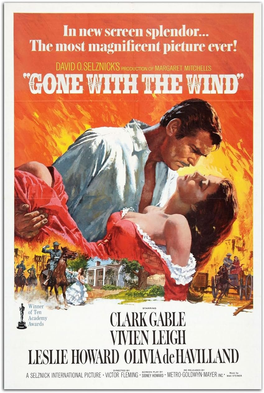 YENFEM56 Movie Gone with the Wind Poster Wall Art Painting Canvas Art Print Modern Home Bedroom Decor Poster